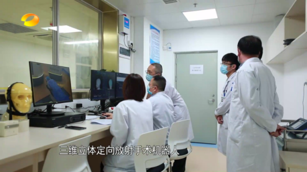 节目中的“三维立体定向放射手术机器人”,是广州中医药大学金沙洲医院国际肿瘤医疗中心引进的目前国内首台"全数字化安科锐M6立体定向放射外科机器人",它属于立体定向放射治疗(SBRT)的范畴,能够从三维立体的方向追踪病人体位、肿瘤位置和病人呼吸运动的反馈,并能在治疗过程中针对病人的肿瘤靶区(治疗的目标如肿瘤等)因呼吸运动而产生的微小移动的动态状态下通过医学影像的引导进行照射方向的实时修正。射波刀有着疗程短、剂量率高,治疗范围广、影像引导速度快和运动器官动态追踪能力强等优点。
