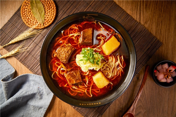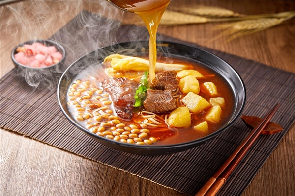 1、选材考究:精选澳洲黑牛的牛腩和牛大骨用以制汤,且牛腩严格按照肥瘦比2:8进行筛选,一头高原牦牛,能够被一家来福选上用来制汤的合格部位,仅有1/15。