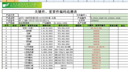 关键件维护信息记录了公司每一单台产品内所有核心元器件的序列号(或批次号),使公司产品实现了关键件追溯。