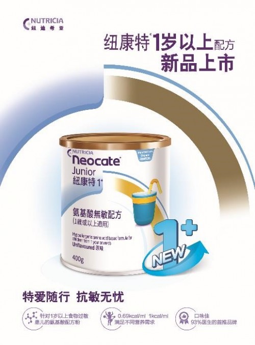 作为一款100%无敏的氨基酸配方粉,纽康特1+营养全面,特别添加高含量的过敏患儿易缺少的钙、铁和维生素D来促进敏宝发育,MCT容易消化吸收,可以充分满足易食物过敏宝宝的营养需求。因为1岁以上的宝宝对营养的需求更大,因此要选择适合其年龄段的奶粉,纽康特1+能提供宝宝所需的能量。考虑到1岁以上的食物过敏患儿更易发生生长发育不良,纽康特1+还采用了1kcal/ml高能量密度营养配方,来帮助过敏宝宝追赶生长。