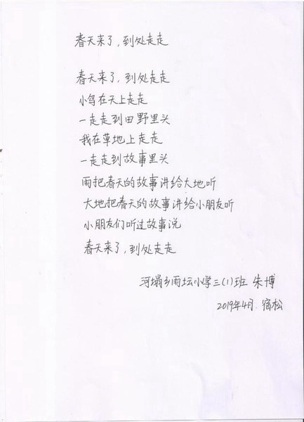 诗歌的作者是一位9岁的乡村孩子小波(化名),他在河塌乡雨坛小学上三年级。