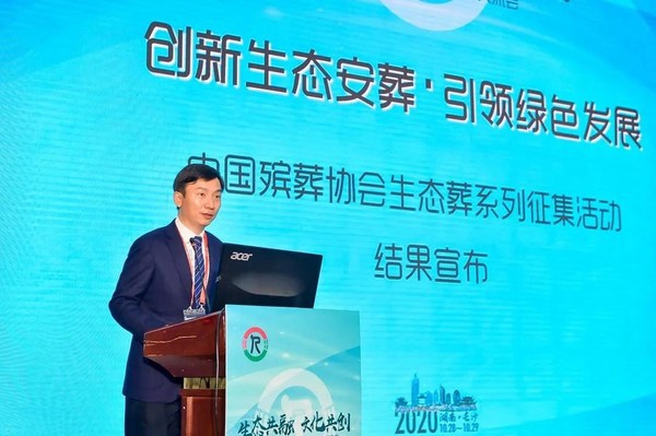 中国殡葬协会公墓工作委员会主任赵小虎宣布获奖名单