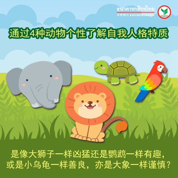 “K-Town小镇”心态测试通过4种动物个性呈现自我人格特质,是像大狮子一样凶猛,像鹦鹉一样有趣,还是小乌龟一样善良,或是大象一样谨慎?