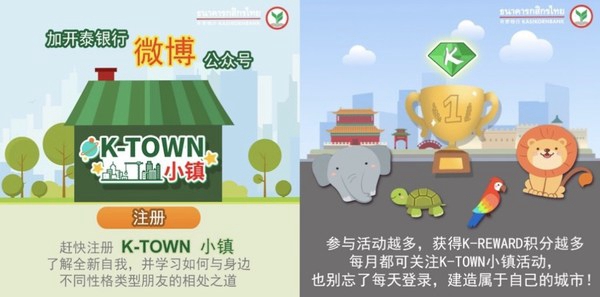 十一长假刚刚结束,泰国四大商业银行之一的开泰银行近期在官方微信公众号上推出了“K-Town小镇”游戏,旨在帮助用户延续假期的放松心态,传递自在生活方式。