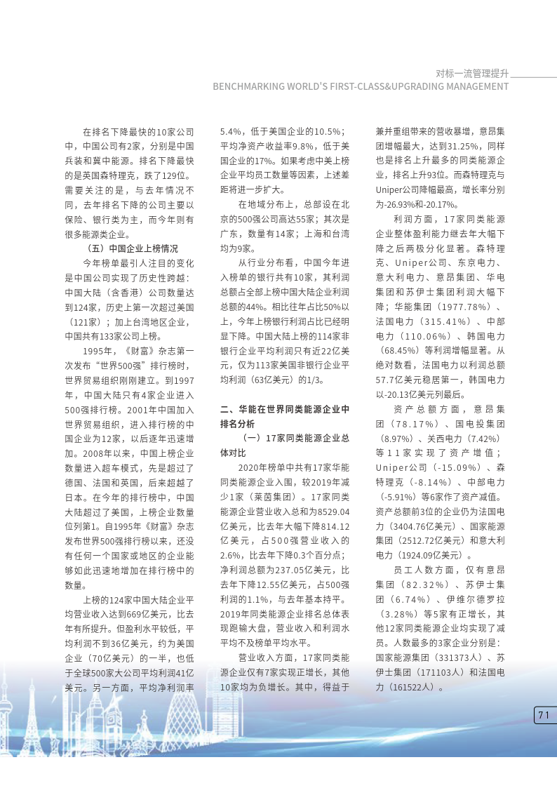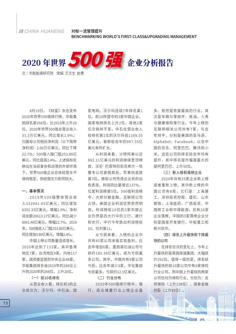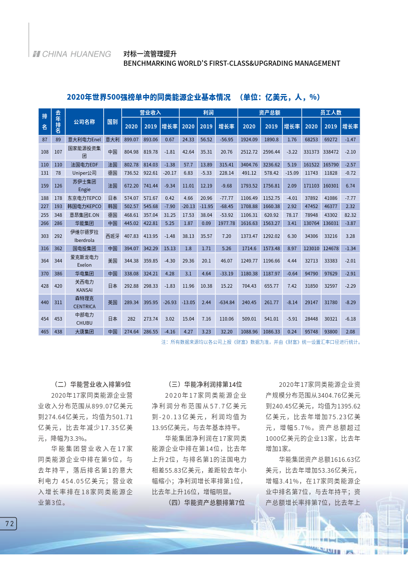 华能在2020年世界500强同类能源企业中排名分析——2020年世界500强企业分析报告