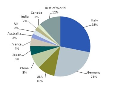 而2011年市场的真实安装量数字是有争议的,取决于2010年意大利市场的实际规模。IMS Research计算光伏需求的方法涉及到并网、注册以及不同市场的批准标准等问题。Ash Sharma表示:“由于在‘Conto Energias’能源法案下的各种安装量的数据各不相同,所以2010年和2011年意大利市场的规模非常混乱。IMS Research分析了该国组件和逆变器的出货量,并交叉核对了集成商和分销商的库存水平,得出结论,2010年意大利新增光伏装机量为4.5GW。”