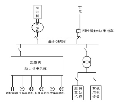 本技术系统包括建设滑触线供电线路或电缆卷筒供配电系统-避雷系统、供配电及电气保护装置和快速切换装置。